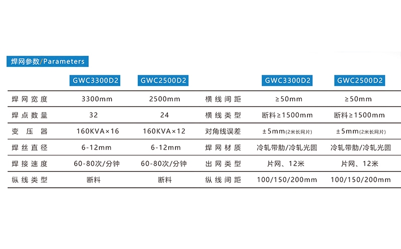 鋼筋網(wǎng)焊接生產(chǎn)線,焊接網(wǎng)寬度3300mm和2500mm兩種,焊接絲徑6-12mm,焊接速度為60-80次/分鐘,縱橫線均為斷料。標(biāo)準(zhǔn)配置:簸箕式輸網(wǎng)與落網(wǎng)、縱線放料架、送徑小車、焊接主機(jī)、增料料斗、伺服拉網(wǎng)、冷水機(jī)。可選配置:快速拉網(wǎng)+升降式落網(wǎng)與出網(wǎng)、自動(dòng)翻網(wǎng)、空壓機(jī)。河北驕陽焊工有限公司,0318-7063097