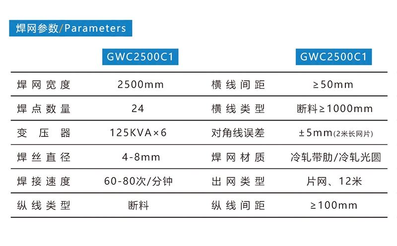 鋼筋網(wǎng)焊接生產(chǎn)線,焊接網(wǎng)寬度2500mm,焊接絲徑4-8mm,焊接速度為60-80次/分鐘,縱橫線均為斷料。標(biāo)準(zhǔn)配置:簸箕式輸網(wǎng)與落網(wǎng)、縱線放料架、送徑小車、焊接主機、增料料斗、伺服拉網(wǎng)、冷水機??蛇x配置:快速拉網(wǎng)+升降式落網(wǎng)與出網(wǎng)、自動翻網(wǎng)、空壓機。河北驕陽焊工有限公司,0318-7063097