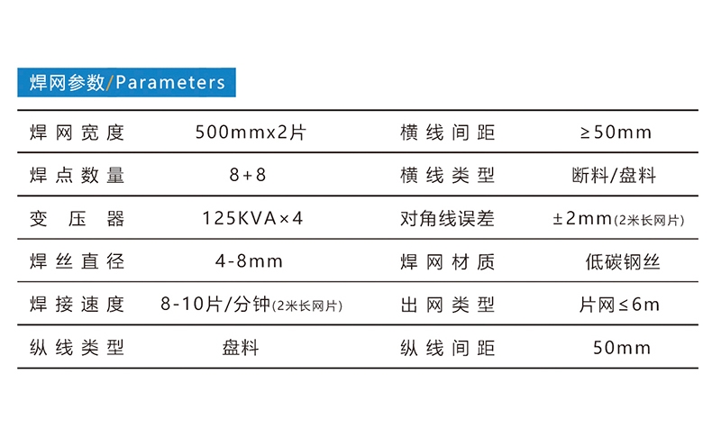 ALC是蒸壓加氣混凝土(Autoclaved lightweight Concrete)的簡稱,它是以石英砂或粉煤灰、水泥、石灰等為主原料,內(nèi)配雙層雙向冷拔絲鋼筋網(wǎng)片,經(jīng)過高溫蒸汽養(yǎng)護(hù)而成的多氣孔混凝土成型板材;既可做墻體材料,又可做屋面板、樓層板、外墻造型,是一種性能優(yōu)越、安裝簡便、靈活的成熟建材。雙片加氣板網(wǎng)片焊接生產(chǎn)線,可以高效率地自動焊接ALC所需的鋼筋網(wǎng)片。焊點數(shù)量8+8個,焊網(wǎng)寬度500mm×2,焊接絲徑4-8mm,每分鐘約焊接10片。標(biāo)準(zhǔn)配置:縱線盤絲、調(diào)直切斷、自動排料、自動送料、橫線料斗、焊接主機(jī)、伺服拉網(wǎng)、快速出網(wǎng)、簸箕式落網(wǎng)。可選配置:正反片落網(wǎng)、落網(wǎng)小車、橫線盤料、工業(yè)冷水機(jī)、空壓機(jī)。河北驕陽焊工有限公司,0318-7063097
