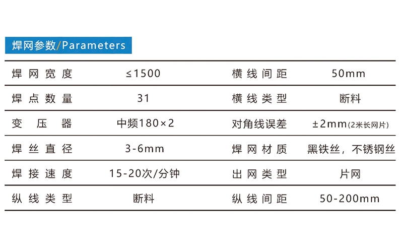 倉(cāng)儲(chǔ)籠&線(xiàn)纜橋架網(wǎng)焊接生產(chǎn)線(xiàn),焊接網(wǎng)寬度≤1500mm,焊接絲徑3-6mm,焊接速度為15-20次/分鐘,縱線(xiàn)橫線(xiàn)均為斷料。河北驕陽(yáng)焊工有限公司,0318-7063097